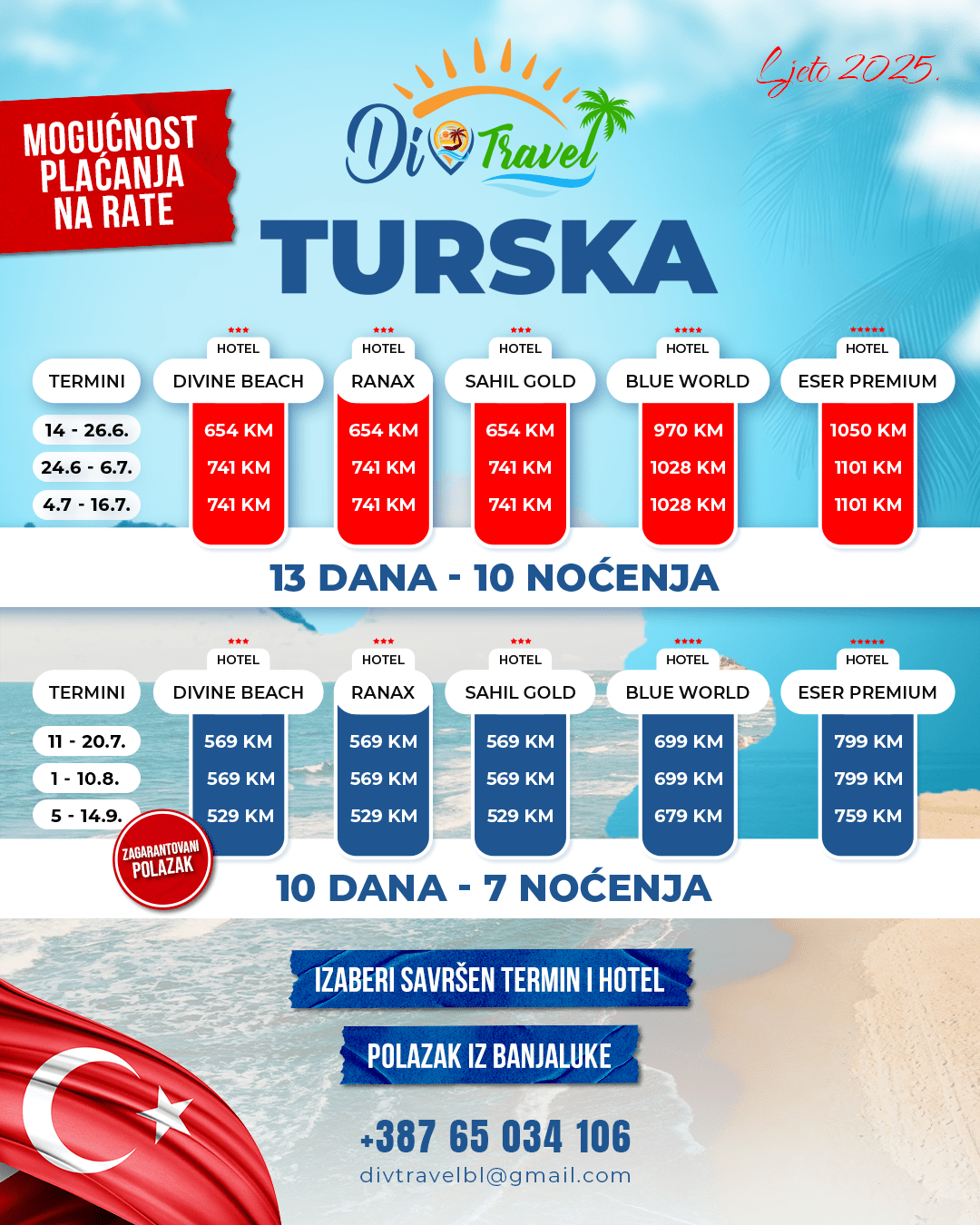 REZERVIŠITE LJETOVANJE U TURSKOJ VEĆ DANAS